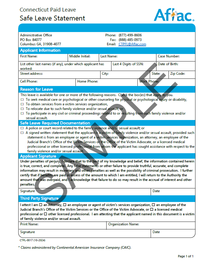 Your Notice of Application will include the required documents, many of which are pre-filled with your name and case number. If you lost these forms, log into the CT Paid Leave Aflac Portal to download your Notice of Application with the pre-filled forms.